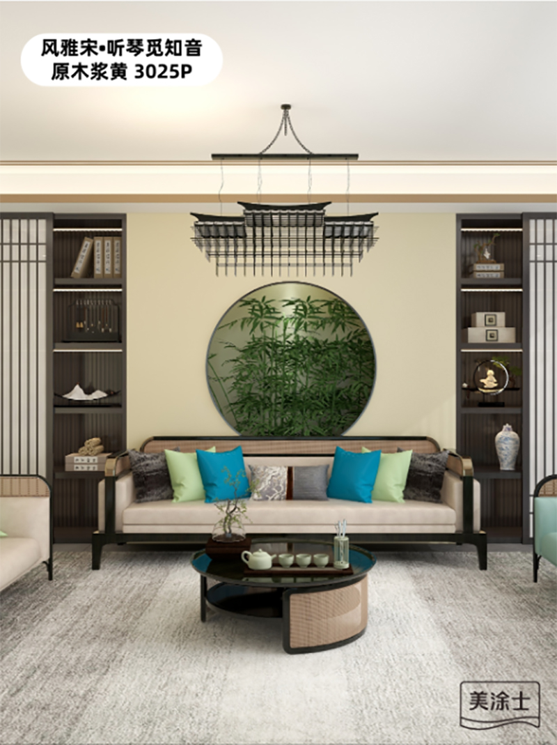 美涂士以北宋《聽琴圖》為靈感,再塑家居國潮風(fēng)范。此圖是傳為北宋宋徽宗創(chuàng)作的中國人物畫,現(xiàn)藏于北京故宮博物院,描繪了君臣在松下?lián)崆佟⒙犌俚膱鼍啊?/span>