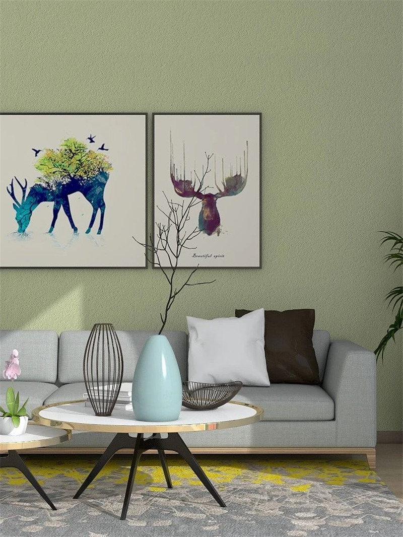 用美涂士微晶石打造的淺綠色背景墻,搭配白色簡(jiǎn)約的裝飾掛畫(huà)和灰色的沙發(fā),低調(diào)而不張揚(yáng)。加上綠植,更顯整個(gè)空間清新自然。