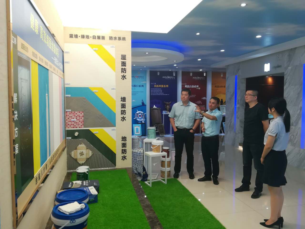 謝會長與王輝秘書長參觀了美涂士榮譽墻與展廳,了解美涂士發(fā)展歷史與企業(yè)實力,并對美涂士全面完整的涂裝產(chǎn)品線給出高度評價。美涂士擁有多元化的涂料產(chǎn)品,墻面漆、家具漆、工程漆、基輔材、膠粘劑、涂裝工具等等完整的涂裝產(chǎn)品線,實現(xiàn)家裝公司對墻面涂裝產(chǎn)品的一體化采購與管控,降低整體采購成本與流程,更好的保證墻面涂裝質(zhì)量!