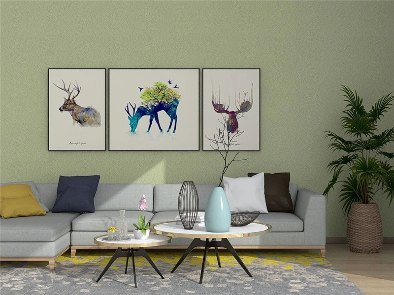 用美涂士微晶石打造的淺綠色背景墻,搭配白色簡(jiǎn)約的裝飾掛畫(huà)和灰色的沙發(fā),低調(diào)而不張揚(yáng)。加上綠植,更顯整個(gè)空間清新自然。